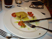 onários, muito agradável e simpático. Ficamos no bar e logo chegou a Teca, começamos com refrigerante Pepsi zero e água sem gás (detalhe a água uma San Pellegrino básica). Depois chegou a Ana Paula Q., Denise, Carol e Angela, detalhe De chegou trazendo uma sacolinha para entregar para Carol, com um pudim de tapioca que ainda estava quentinho, todas ficaram desejando e sonhando com o pudim de tapioca que a De trouxe e deixou todas com inveja da Carol. Vagou uma mesa redonda e fomos sentar, eu, Teca e Carol, começamos tomando um chopp de Stella. Foi servido um couvert com dois tipos de pão uma focaccia e mini ciabatta, manteiga.não consigo lembrar o que mais vinha no couvert principalmente porque o que me marcou foram os pães que estavam muito saborosos. Todas se resolveram por Menu del Giorno, com couvert, entrada e prato principal.