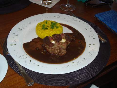 minha memória não falha, os pratos pedidos foram: filé com risoto de açafrão, tornedor com Funghi ao molho de mostarda com panquequinhas de batata , filé de frango ao brie com batata rostie, tournedor com molho de