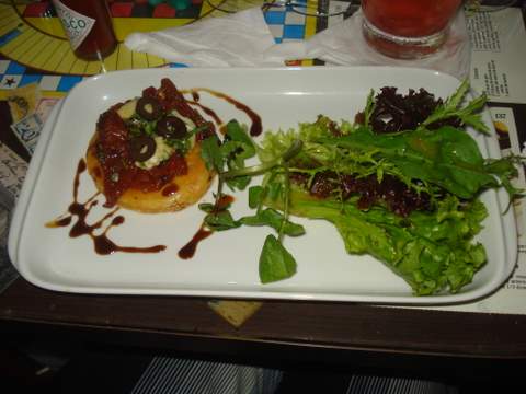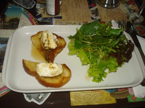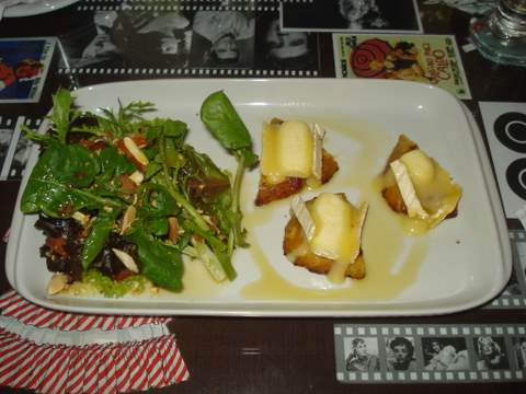 Todas escolheram almoço executivo, entrada + prato principal + sobremesa, vamos para as entradas: Bruschetta de Figo com queijo de cabra e mel, pedido de Ana Paula Q. e Denise, Bruschetta de Salmão Defumado com queijo mascarpone pedido da Carol, Tartelete de massa folhada com Tomate Seco e gorgonzola pedido da Ana Paula L.e Angela, as bruschettas e tarteletes vieram acompanhadas de saladinha de folhas, Mini Salada Milla composta de folhas variadas e torradas com queijo brie e