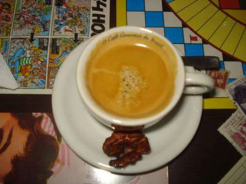Maracujá, o escondidinho superou em muito a mouse, estava divino e maravilhoso!!!, a quantidade bem pequenina, mas como minha mãe fala sobremesa é para limpar a boca e não encher a barriga. Finalizamos nosso almoço com cafezinho expresso que veio uma noz caramelada deliciosa. Saímos do